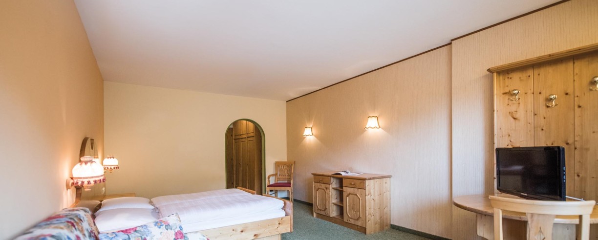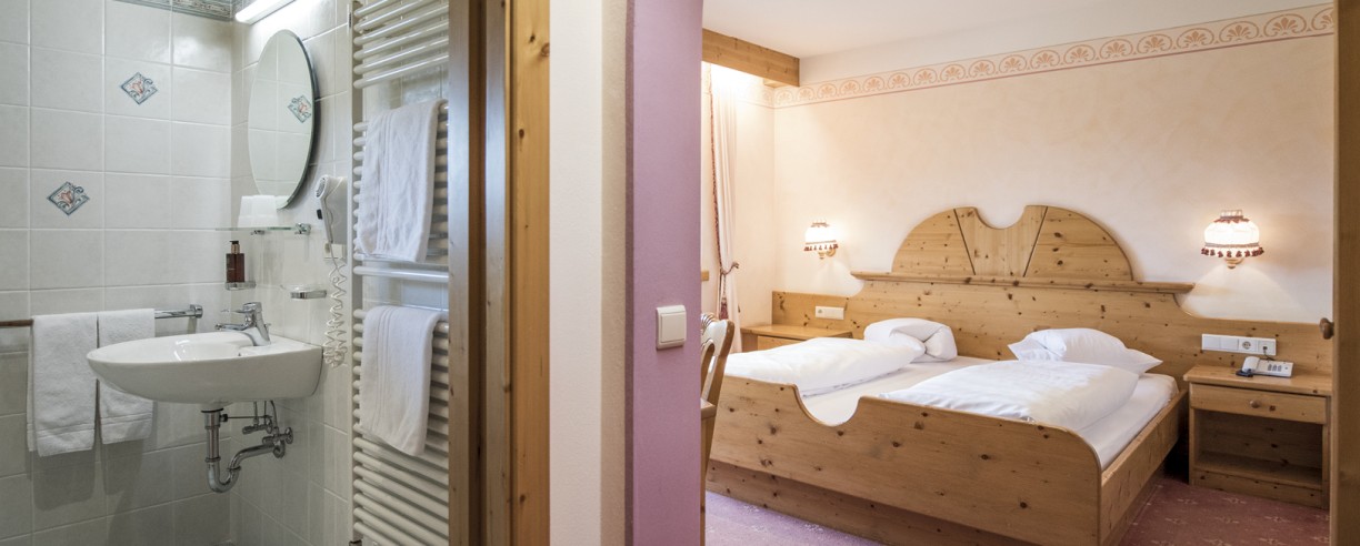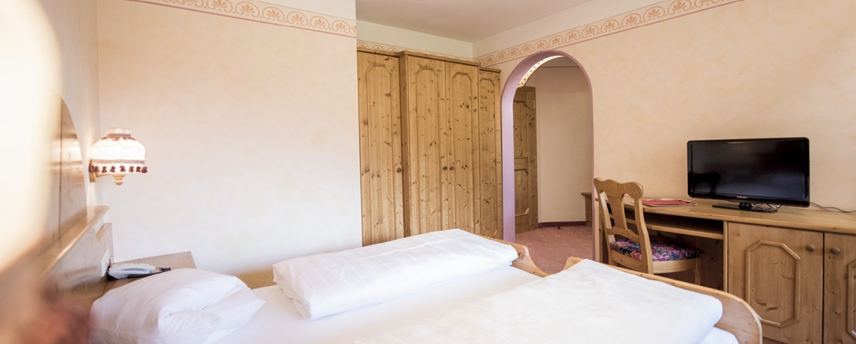 Accoglienti camere doppie con balcone (in parte con vista sulle Dolomiti).